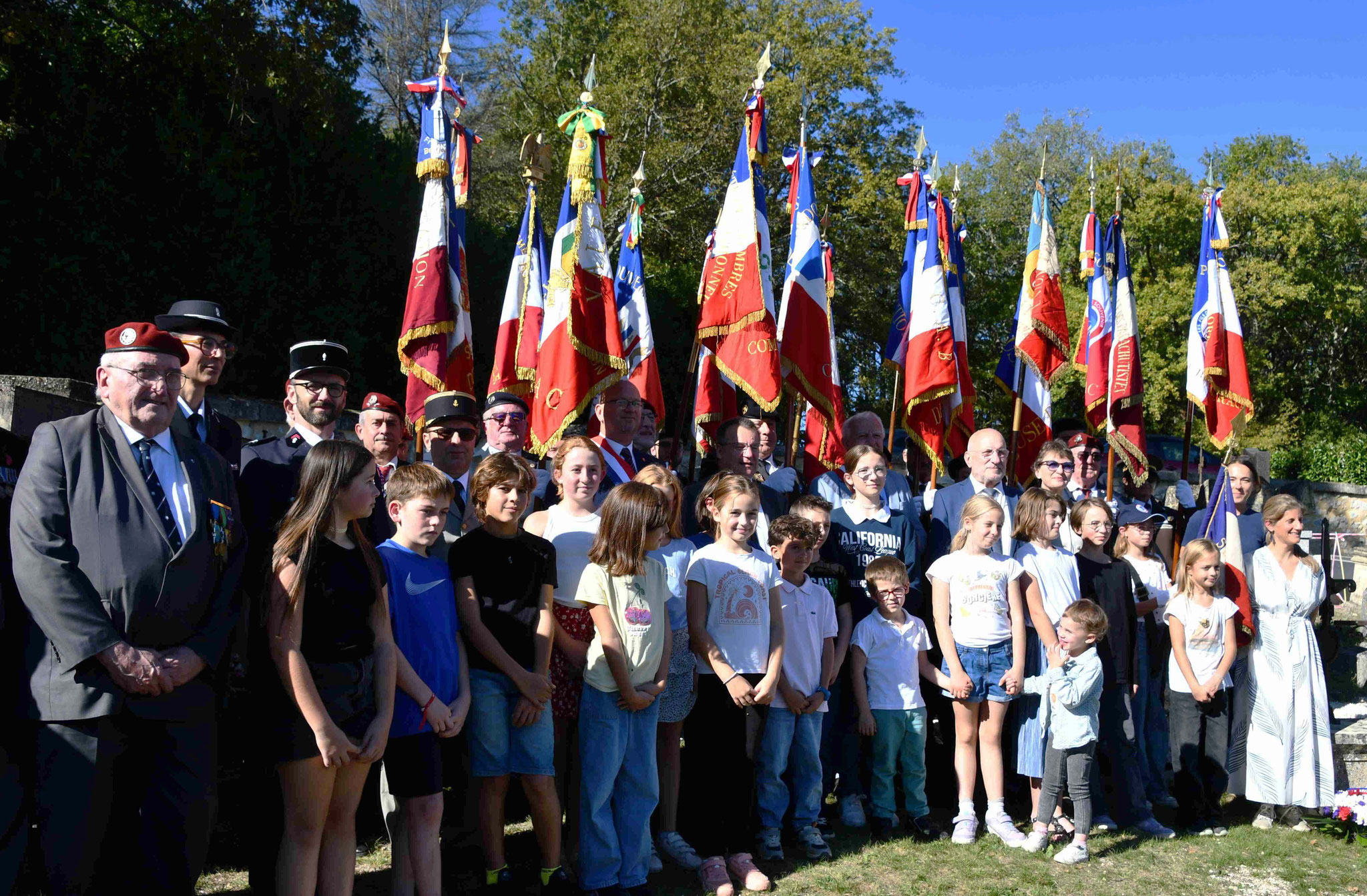 6 - Les autorités et les écoliers devant les 19 drapeaux réunis pour l’occasion.
