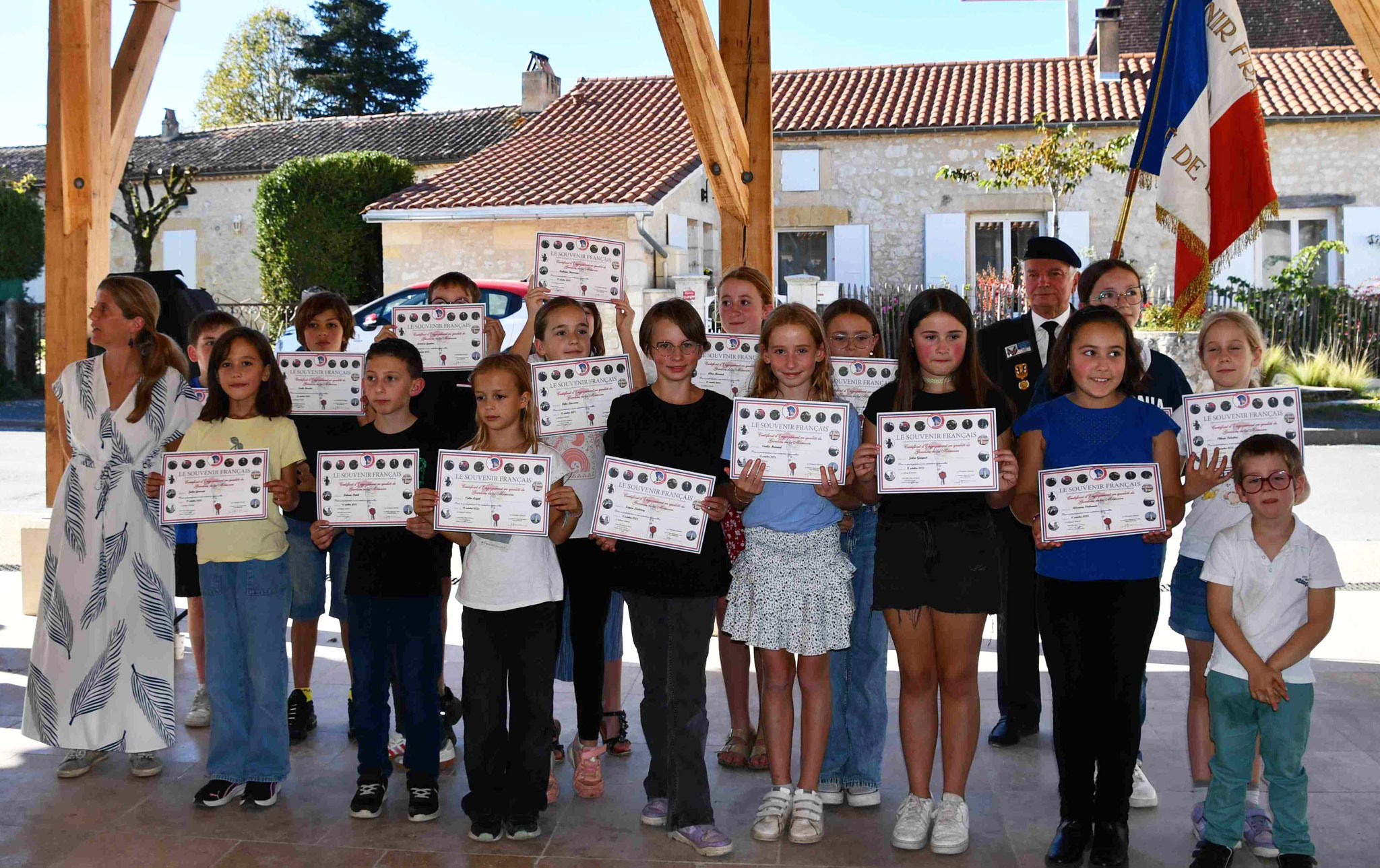 7 - Les 17 écoliers ayant participé à la cérémonie comme porte-drapeau, déposant une gerbe ou une bougie du Souvenir Français sont récompensés par l’obtention du diplôme de Gardien de la mémoire.