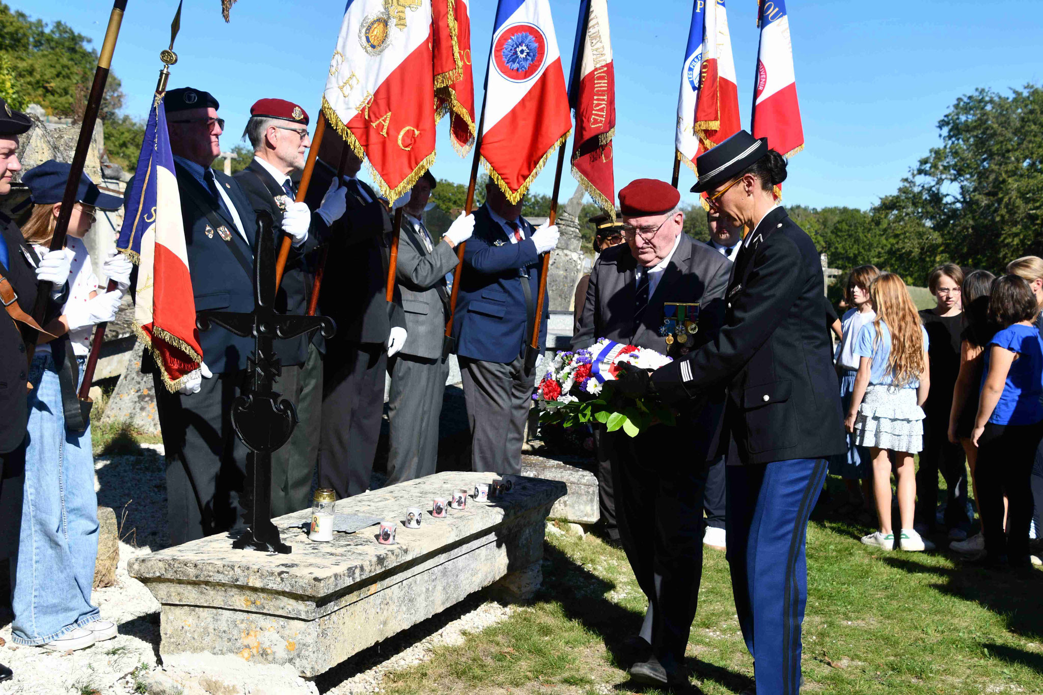 4 - Dépôt de gerbe par Frédéric Gontier, président du comité de Bergerac du Souvenir Français et la cheffe d’escadron Sophie Chahed, commandant la Compagnie de Gendarmerie départementale de Bergerac