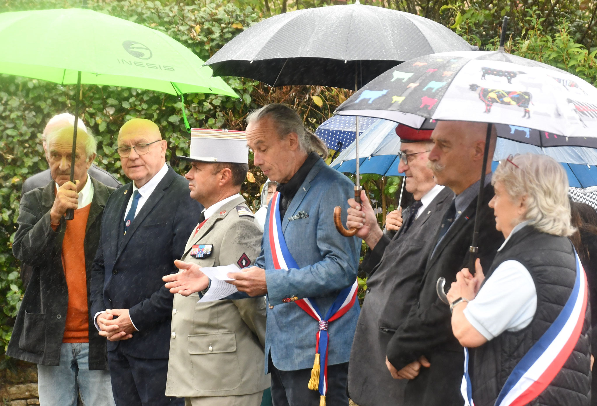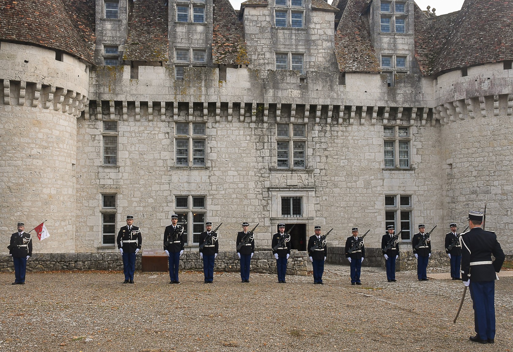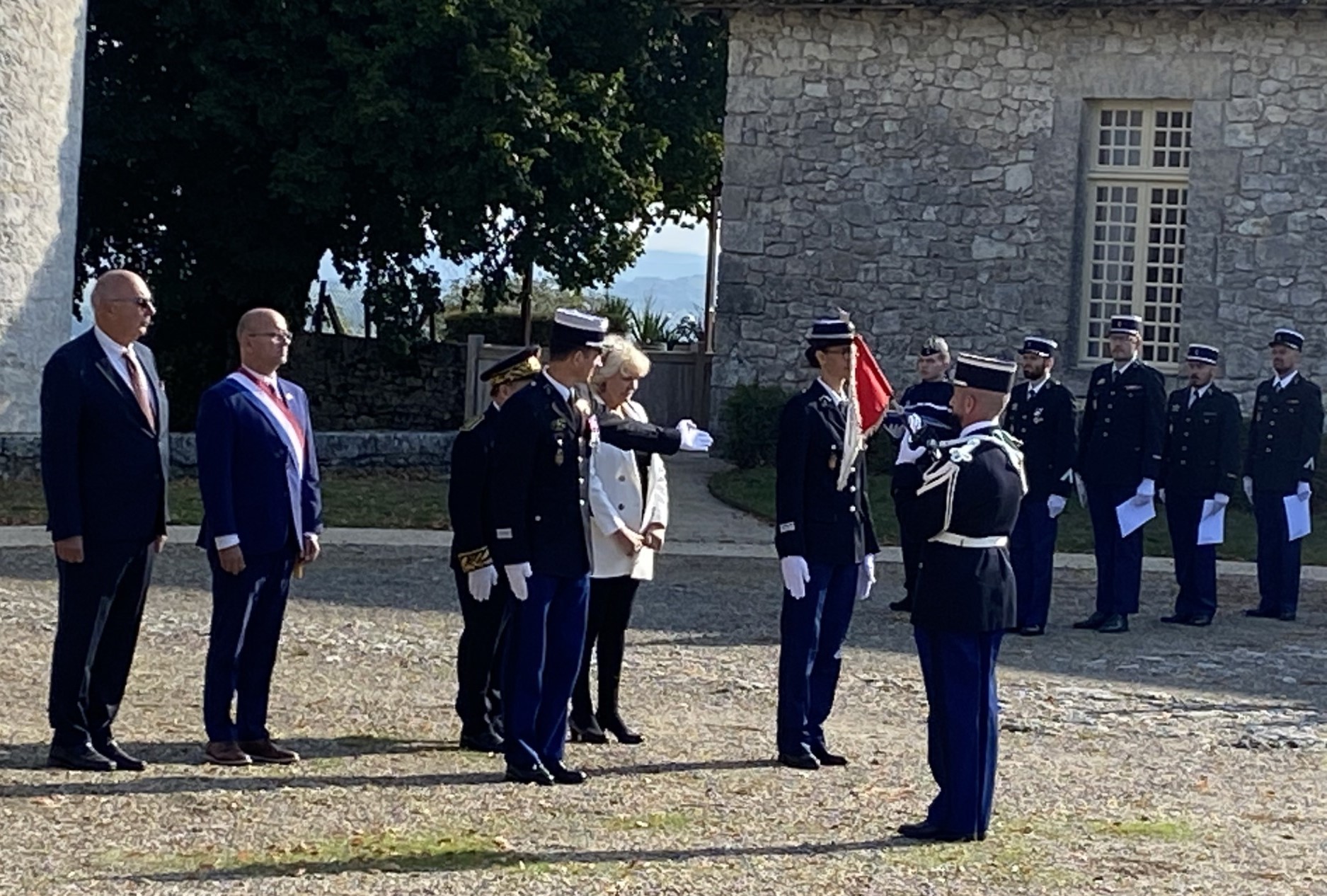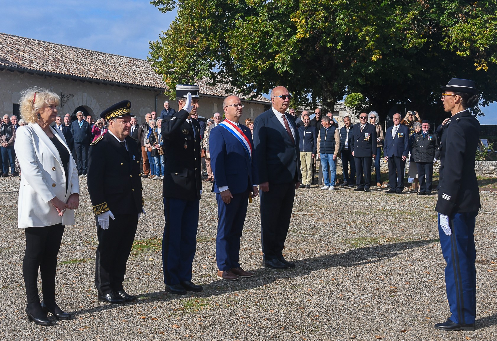 2 - Les autorités : Josie Bayle, conseillère départementale ; Serge Mérillou, sénateur ; Jonathan Prioleaud, maire de Bergerac ; Jean-Charles Jobart, Sous-préfet ; Serge Muller, député ; Christophe Cathus, conseiller régional ; colonel Jean-Philippe Demange, commandant le groupement de gendarmerie de la Dordogne et le chef d'escadron Cyril-Marie Gibiot, commandant la compagnie de gendarmerie de Bergerac.