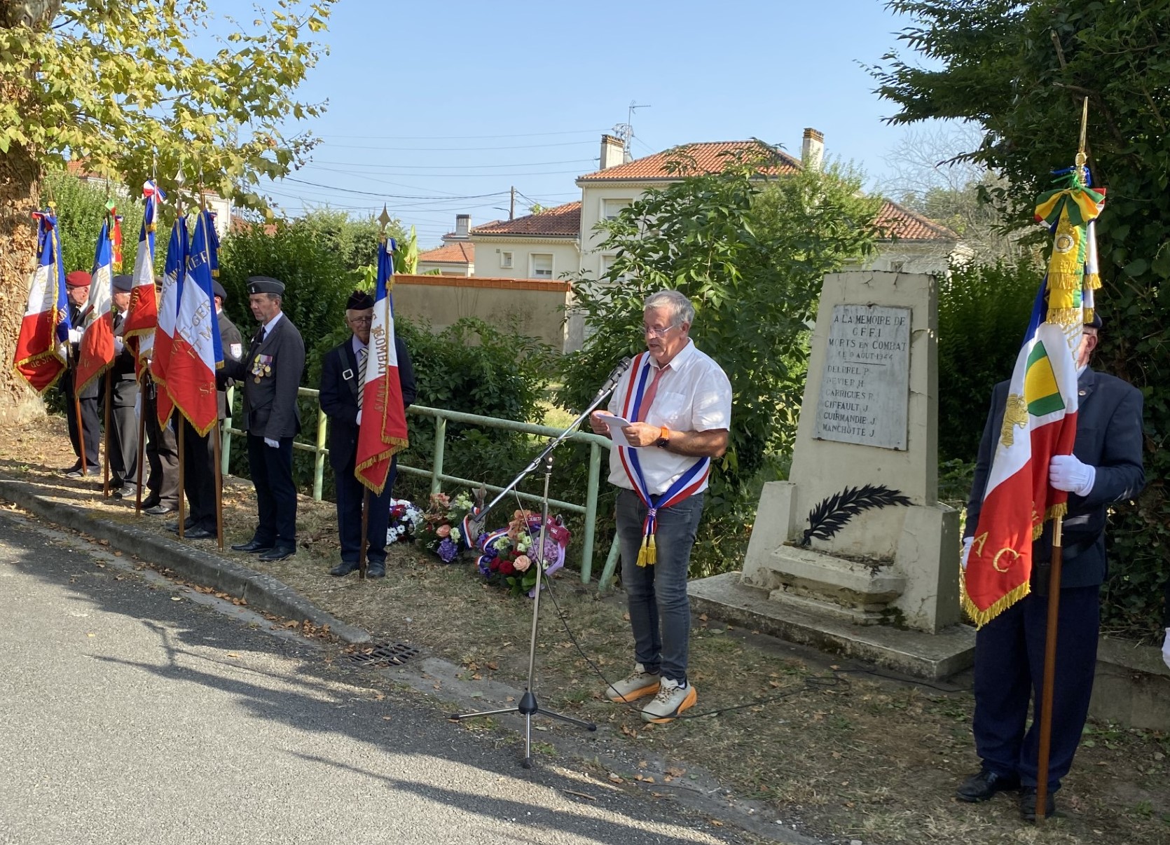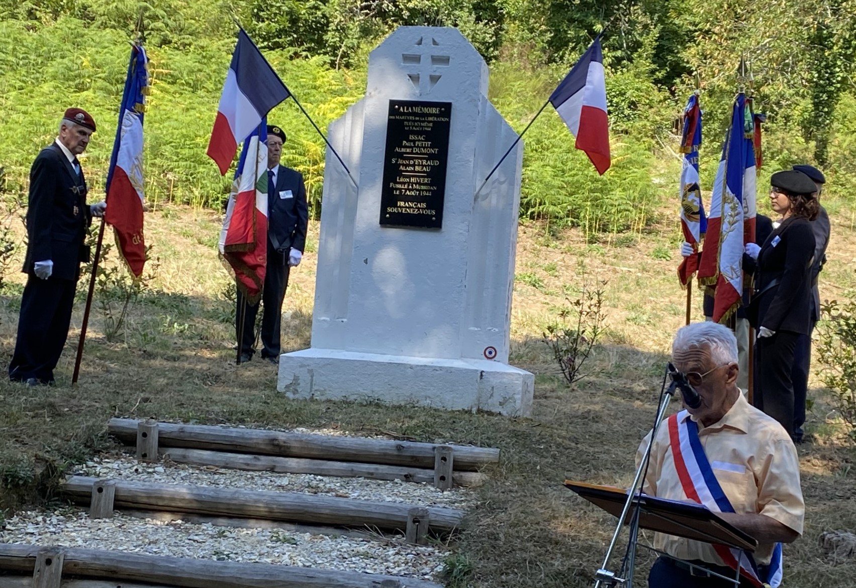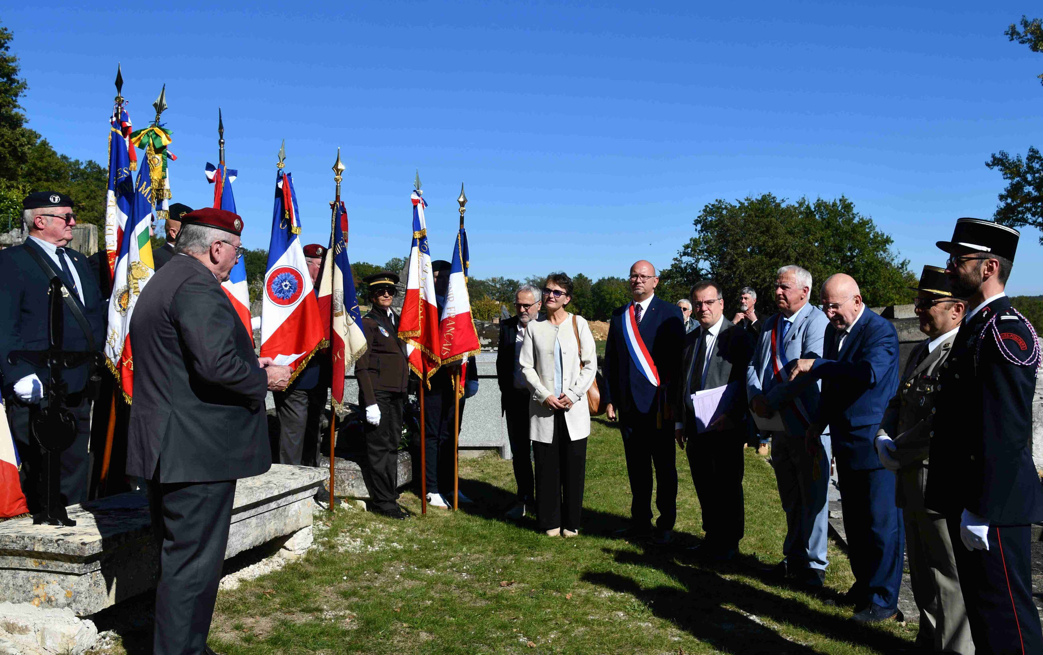 4 - Les autorités et les porte-drapeaux devant la stèle.