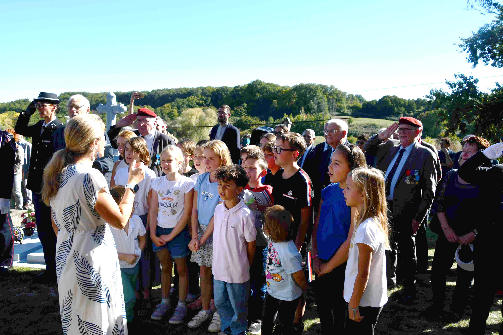 5 - Dirigés par Vanessa Barbut, professeure des écoles de Faux-en-Périgord, les écoliers entonnent l’hymne national.