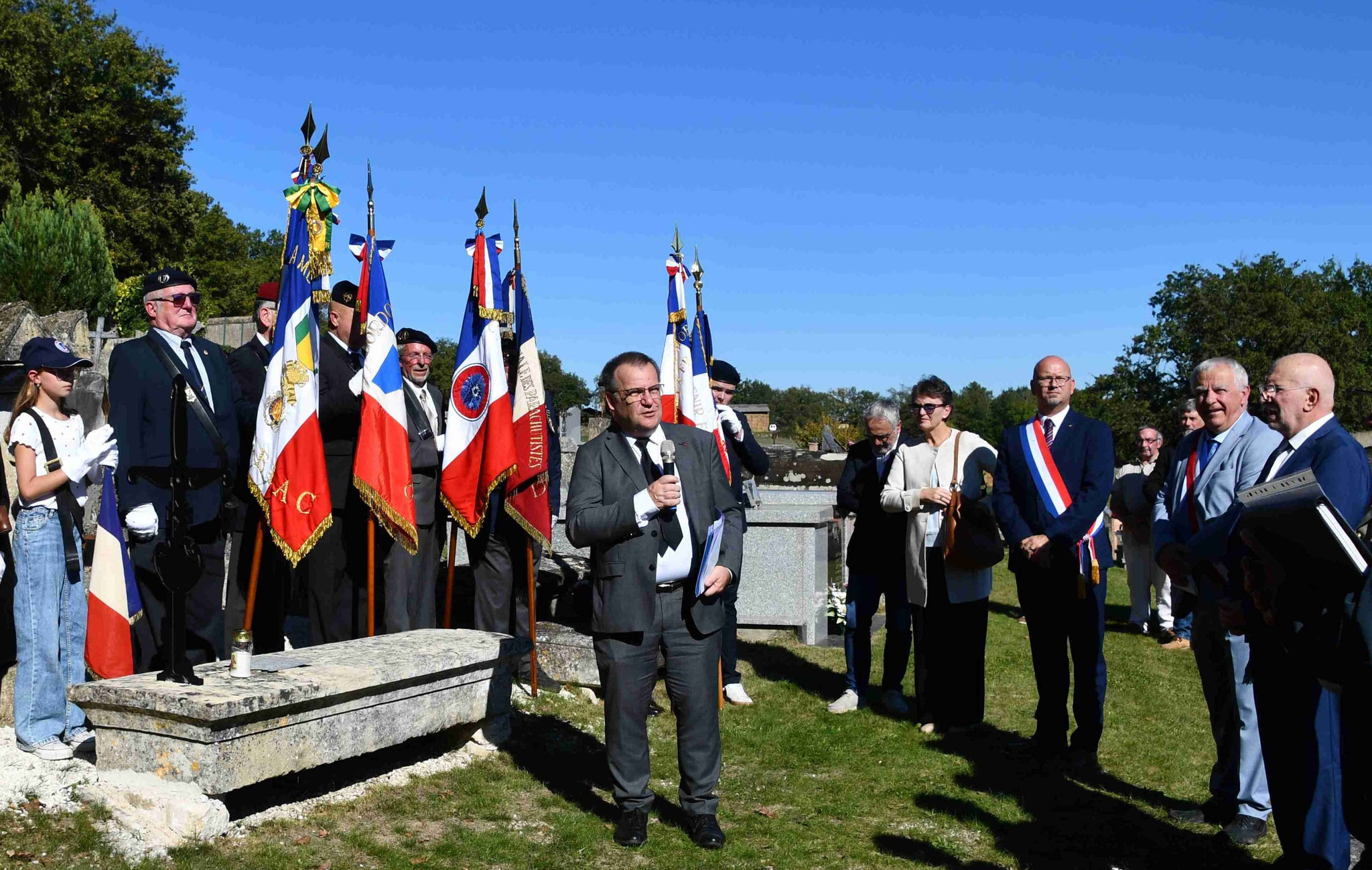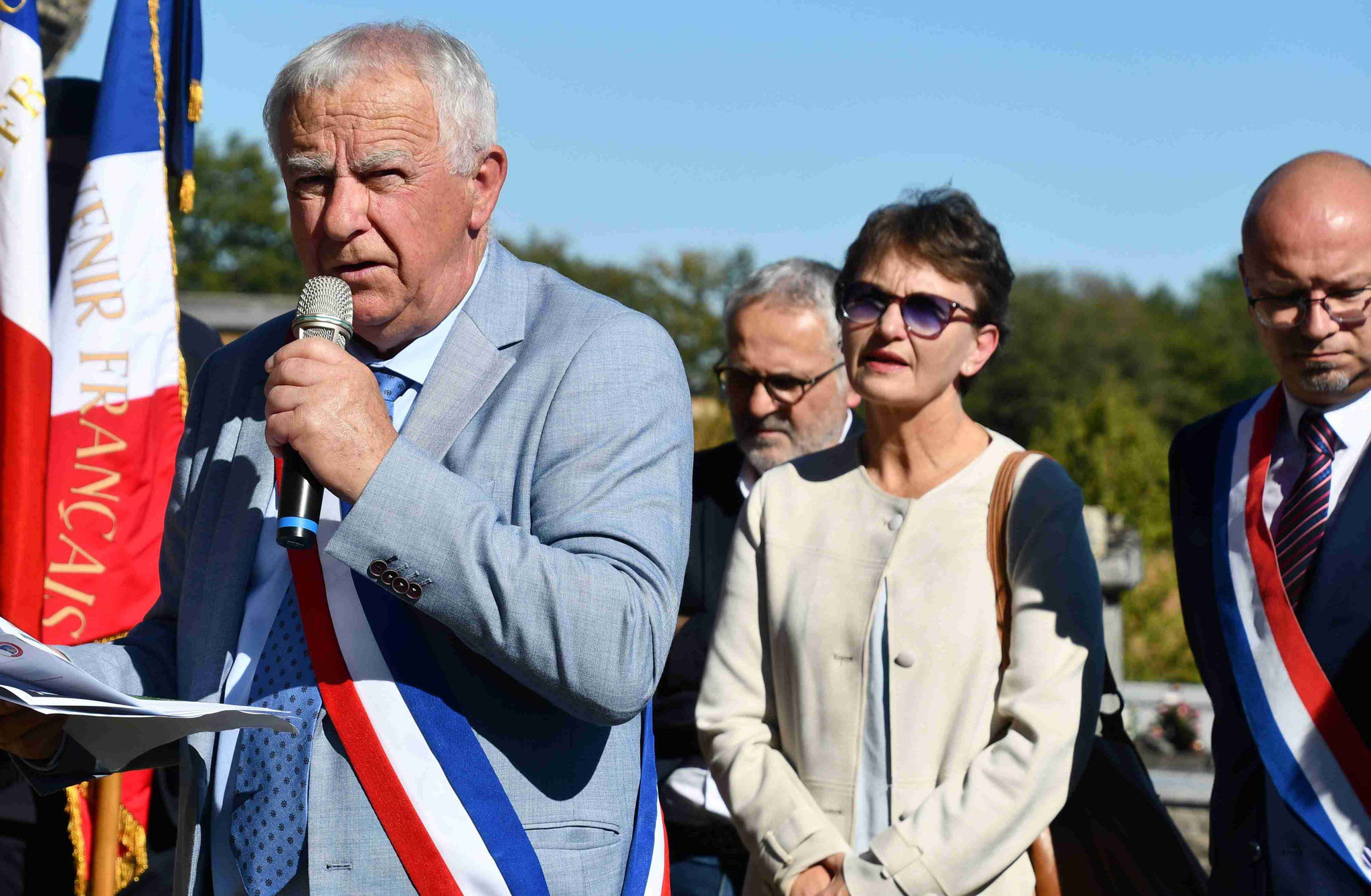 3 - Interventions de Monsieur le sous-préfet. À gauche sur la photo, Julia qui porte un drapeau pour la première fois.