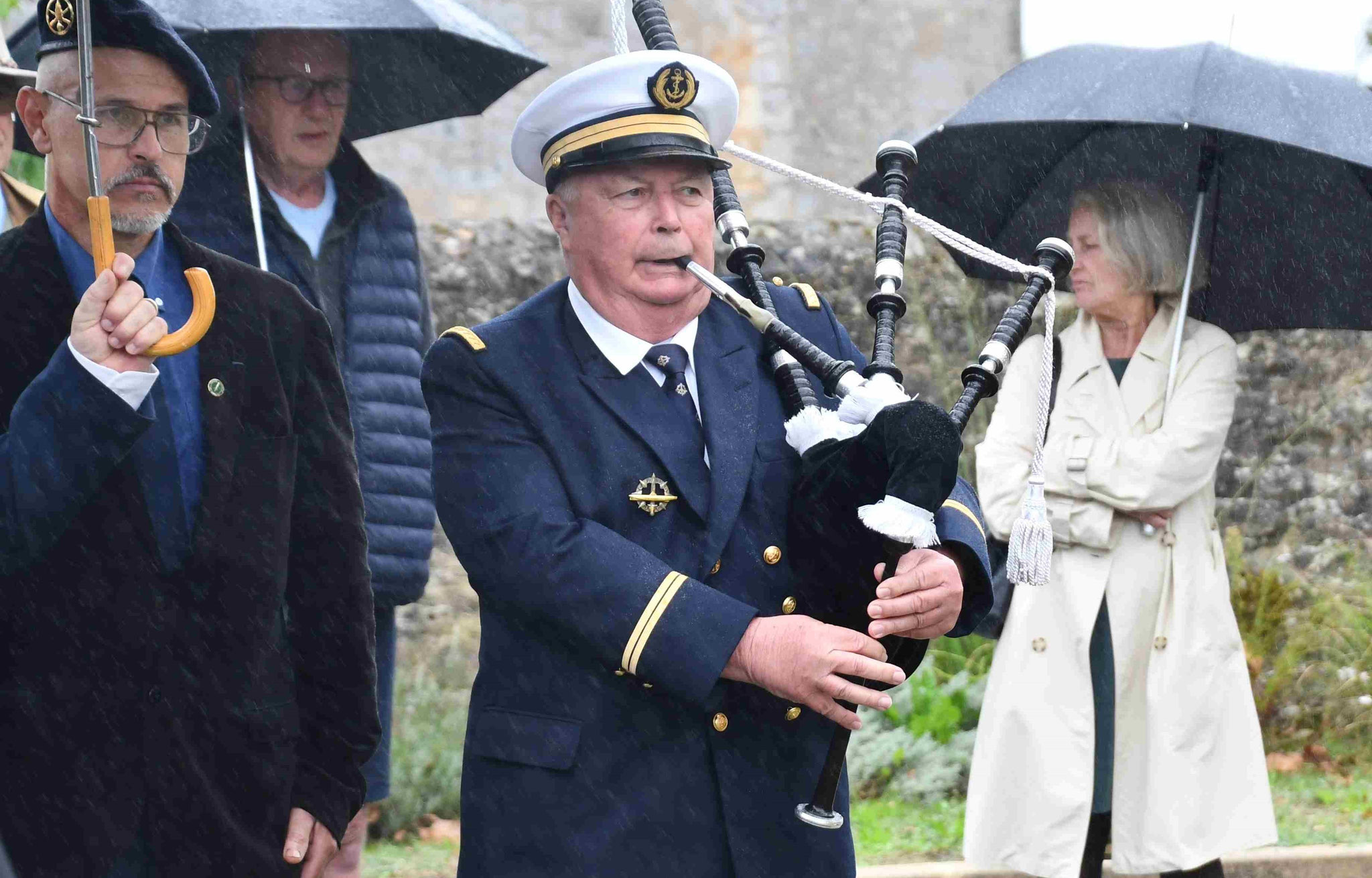 3 - Les commandements étaient donnés par Alain Broquet, cornemuse de l’Association des Anciens marins de Bergerac.