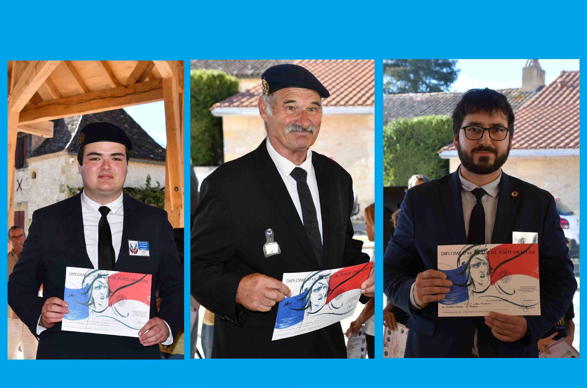 9 - Clément Abarnou, Patrice Mauduit et Victor Rigoulet ont obtenu l’insigne de bronze de porte-drapeau délivré par l’ONaC-VG.