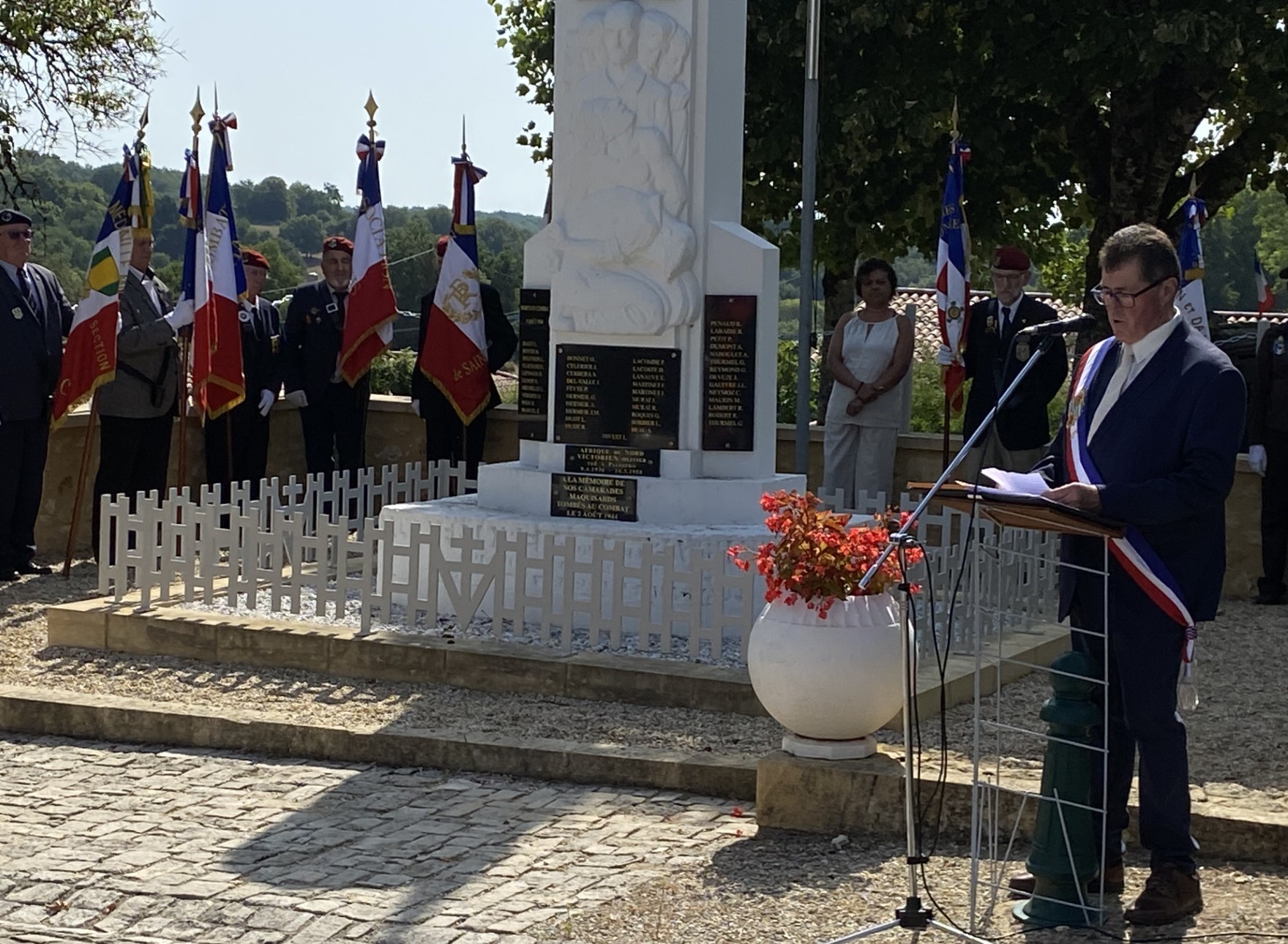 6 – Les autorités et les drapeaux devant le Monument aux Morts.
